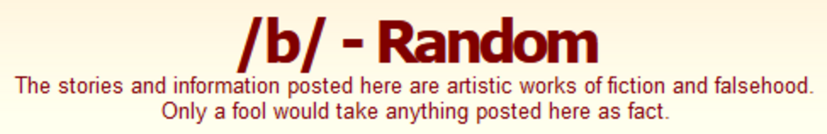 /b/, also called random, is an anonymous imageboard on 4chan. It was the first board created during the establishment of the platform in 2003, and it then stood for... Wikipedia